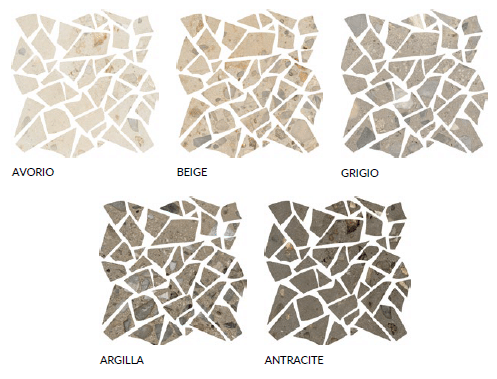 Ce grès cérame est décliné en 8 coloris qui reprennent le terrazzo et l’effet pierre pour un rendu extraordinaire dans vos projets d’aménagement.