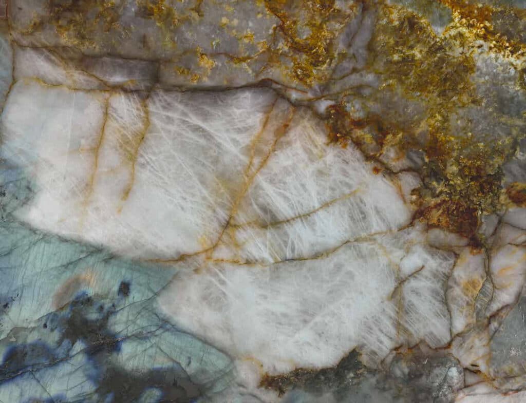 La collection de grès cérame effet marbre bleu Argentillo Blue vous propose de redécouvrir la beauté brute des pierres naturelles, à travers le quartzite de Patagonie et le granite labradorite.