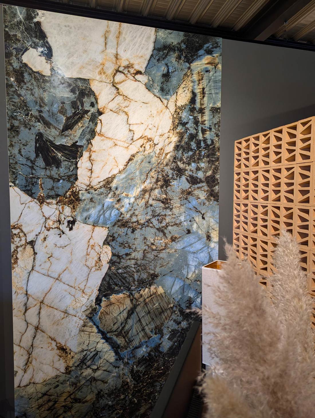 La collection de grès cérame effet marbre bleu Argentillo Blue vous propose de redécouvrir la beauté brute des pierres naturelles, à travers le quartzite de Patagonie et le granite labradorite.