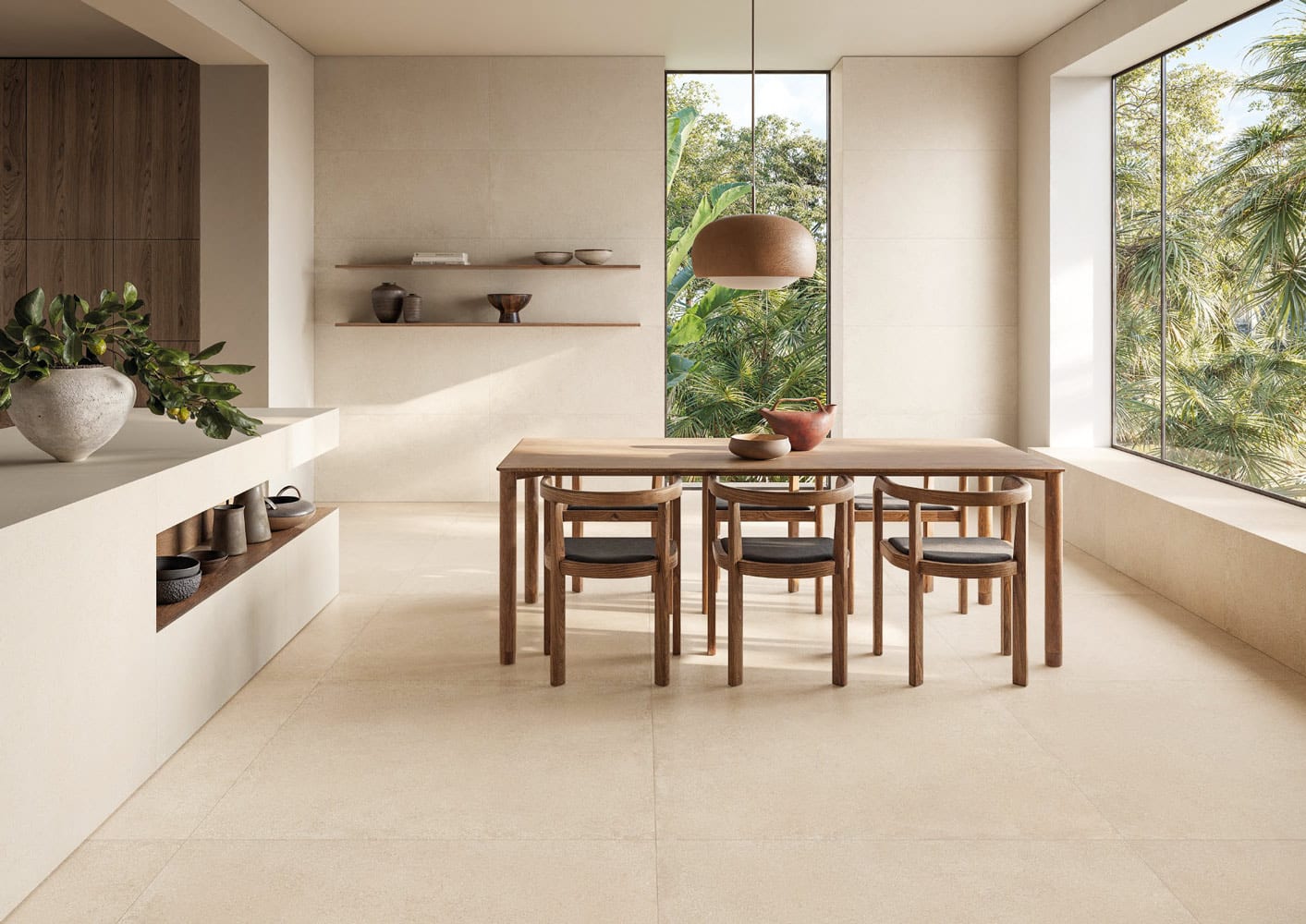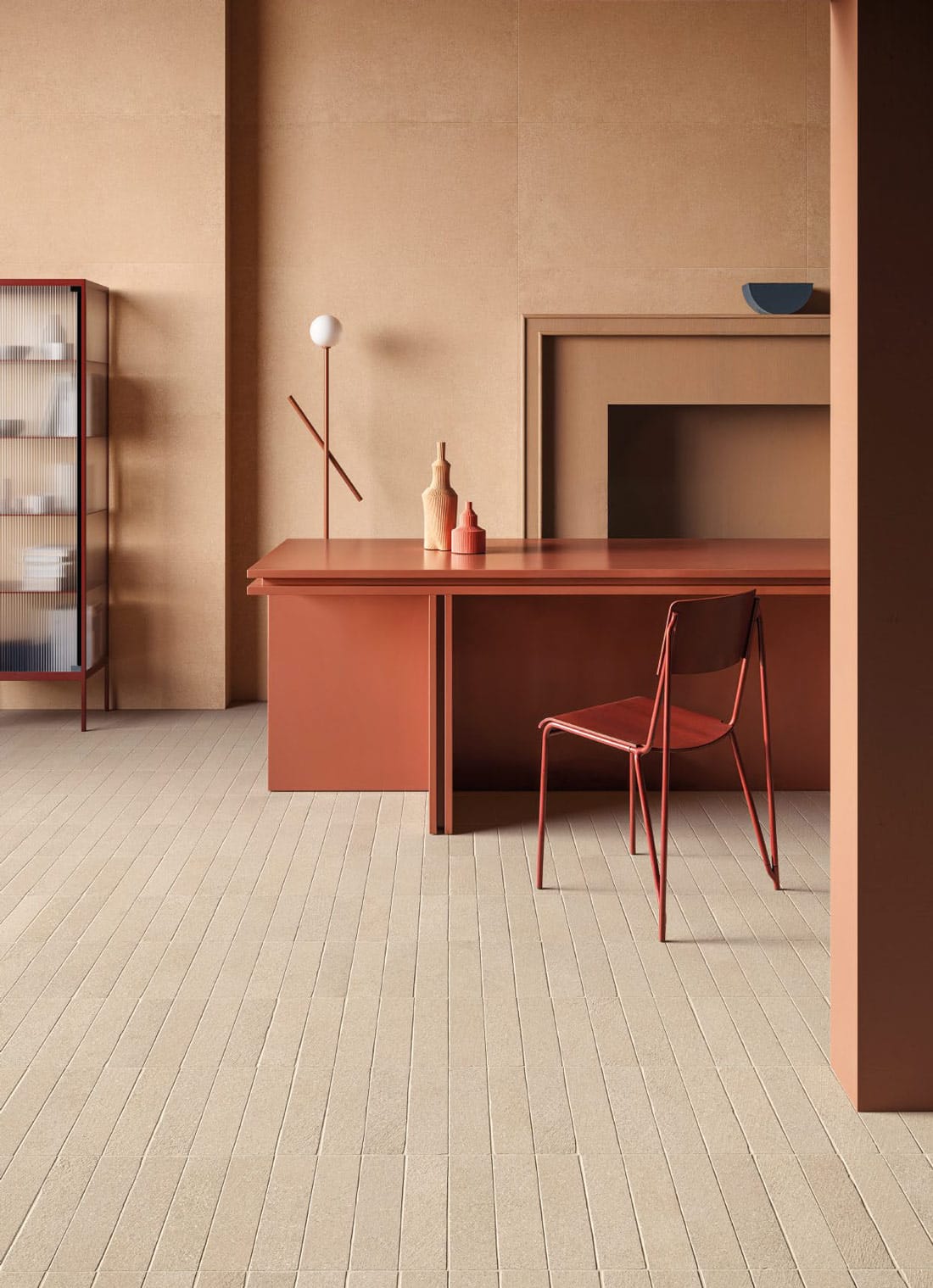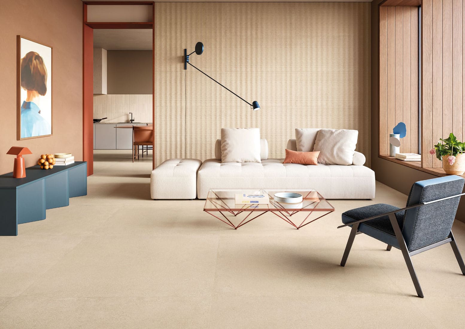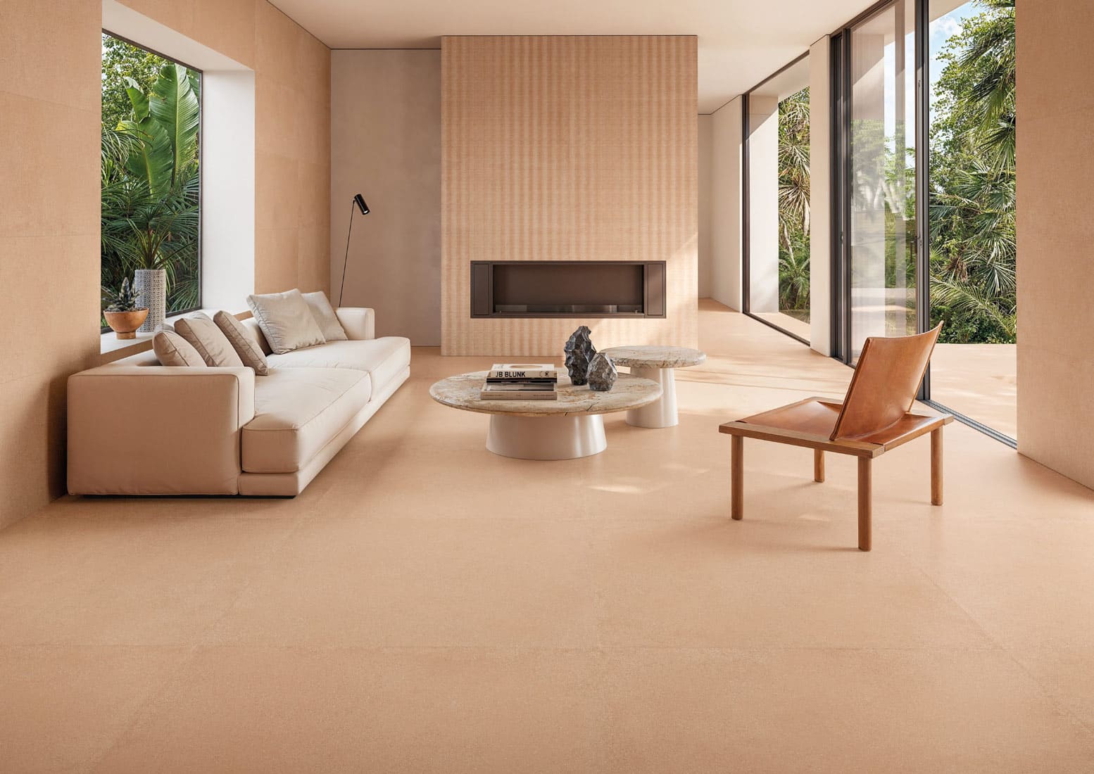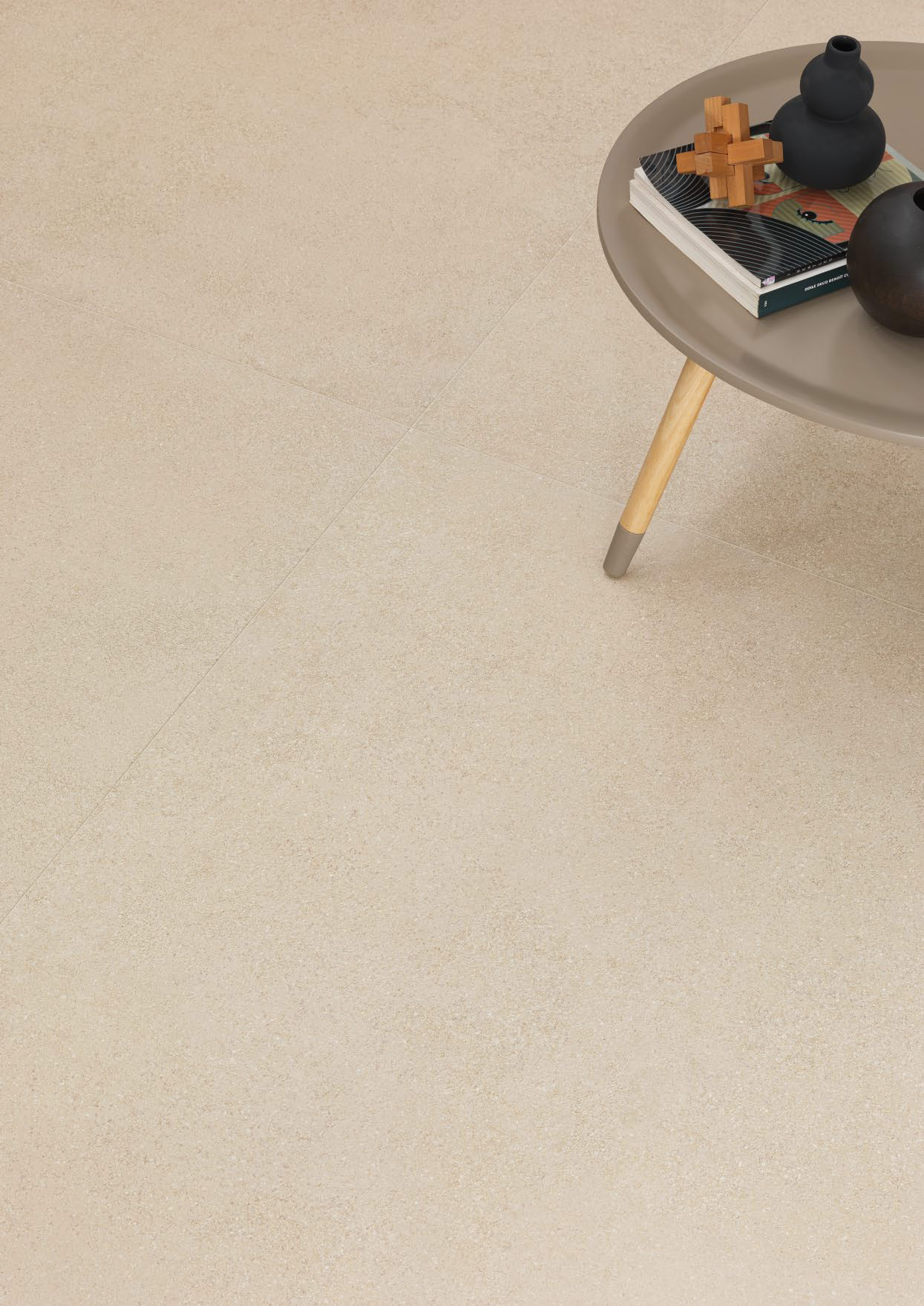 La collection est disponible en trois formats essentiels : 60×60 cm, 60×120 cm et 120×120 cm, permettant de structurer les espaces avec cohérence, des petites surfaces aux grands volumes. Ces formats assurent une grande liberté de pose, tout en renforçant la continuité visuelle entre les différentes zones.