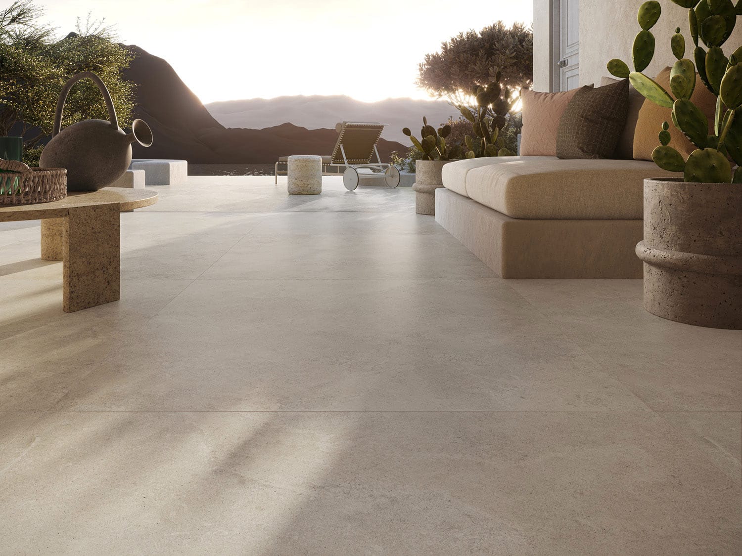 La collection propose une palette de coloris sobres et méditerranéens : sable, beige, gris clair et pierre vieillie, parfaits pour recréer l’atmosphère chaleureuse et lumineuse du Sud. Les finitions mates ou légèrement texturées apportent un rendu authentique et une sensation agréable sous les pieds.