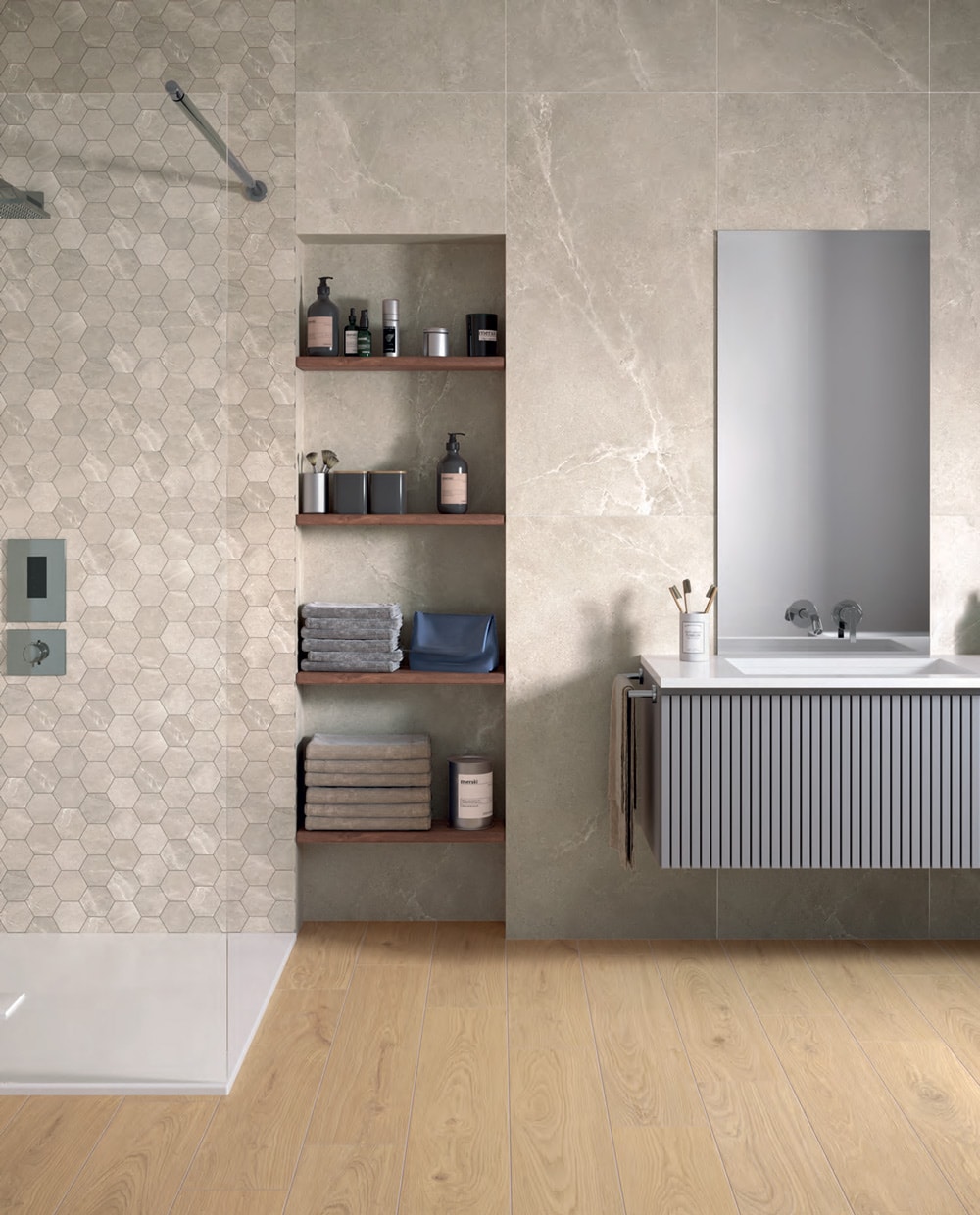 Disponible en plusieurs formats polyvalents – 30×60 cm, 60×60 cm et 60×120 cm – ENDOUA permet de jouer sur les effets visuels et les agencements. La collection se décline en finitions naturelles antidérapantes (R11 A+B) pour les zones extérieures et en surfaces plus douces et mates pour l’intérieur (R10 A). Les bords rectifiés assurent une pose élégante et continue, adaptée aux ambiances minimalistes et contemporaines. Egalement disponible avec bords non rectifiés : 30×60.3 cm et 60.3×60.3 cm.
