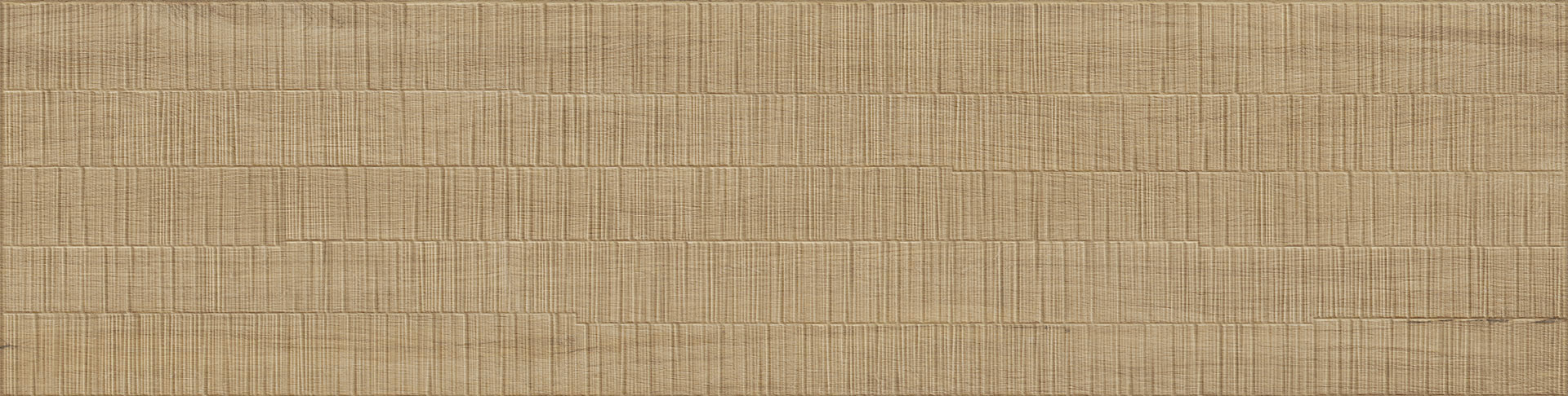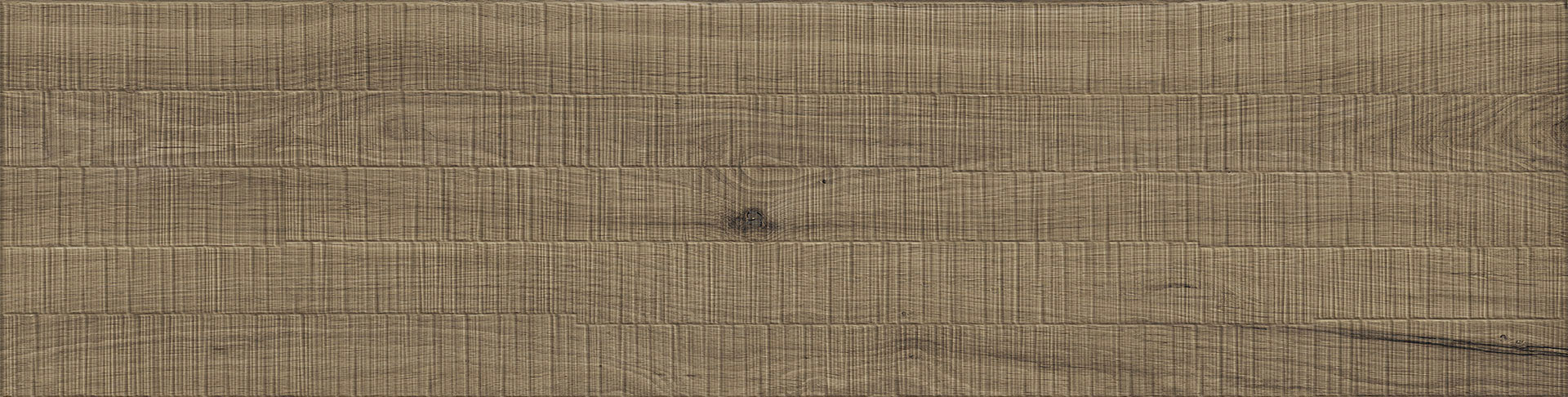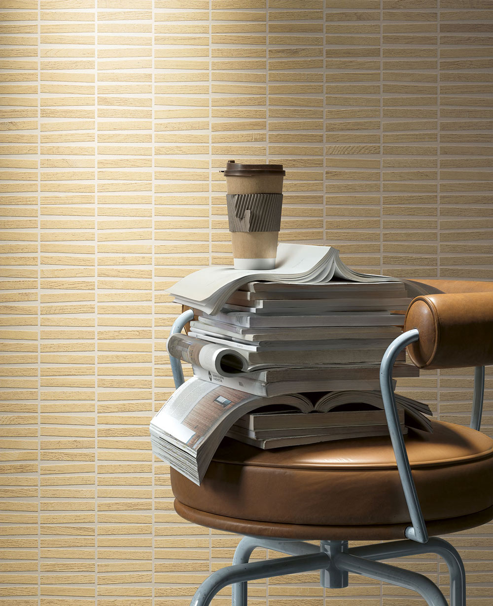 Déclinée en Light, Ivory et Nut, elle offre un réalisme graphique remarquable. Ses formats, du 120×278 cm au 30×60 cm, ainsi que ses mosaïques et ses décors structurés Plissé et Grid, permettent de créer des espaces harmonieux et expressifs.