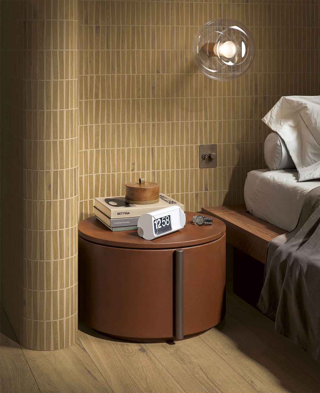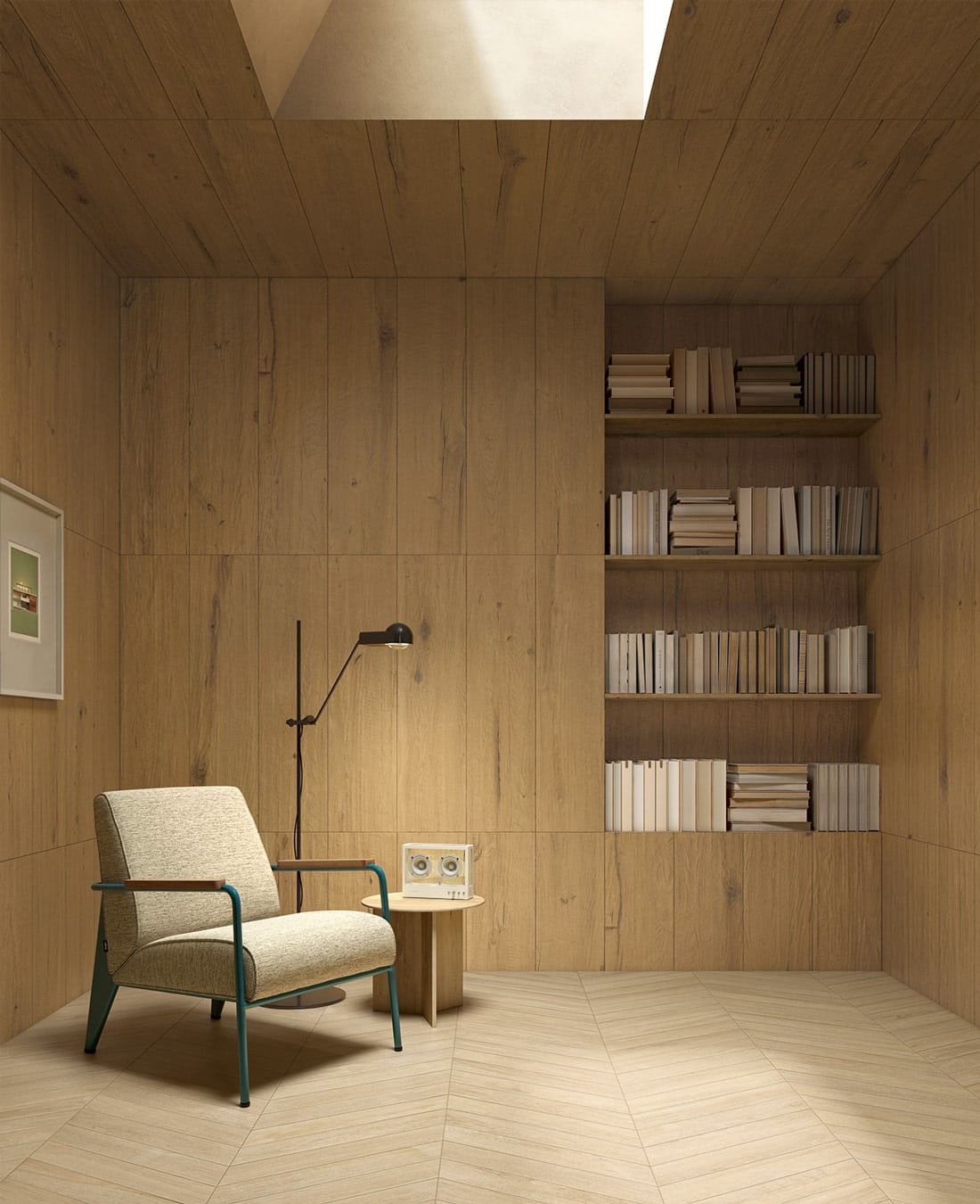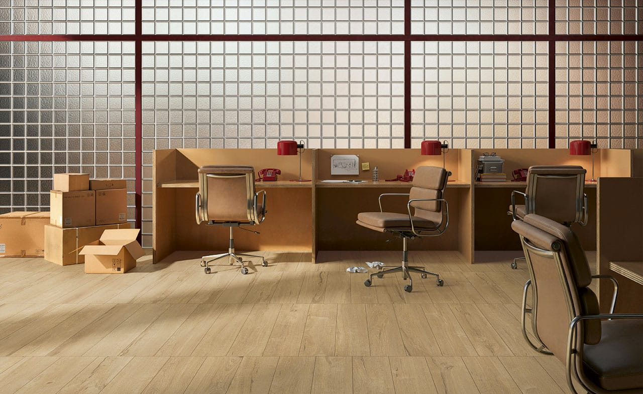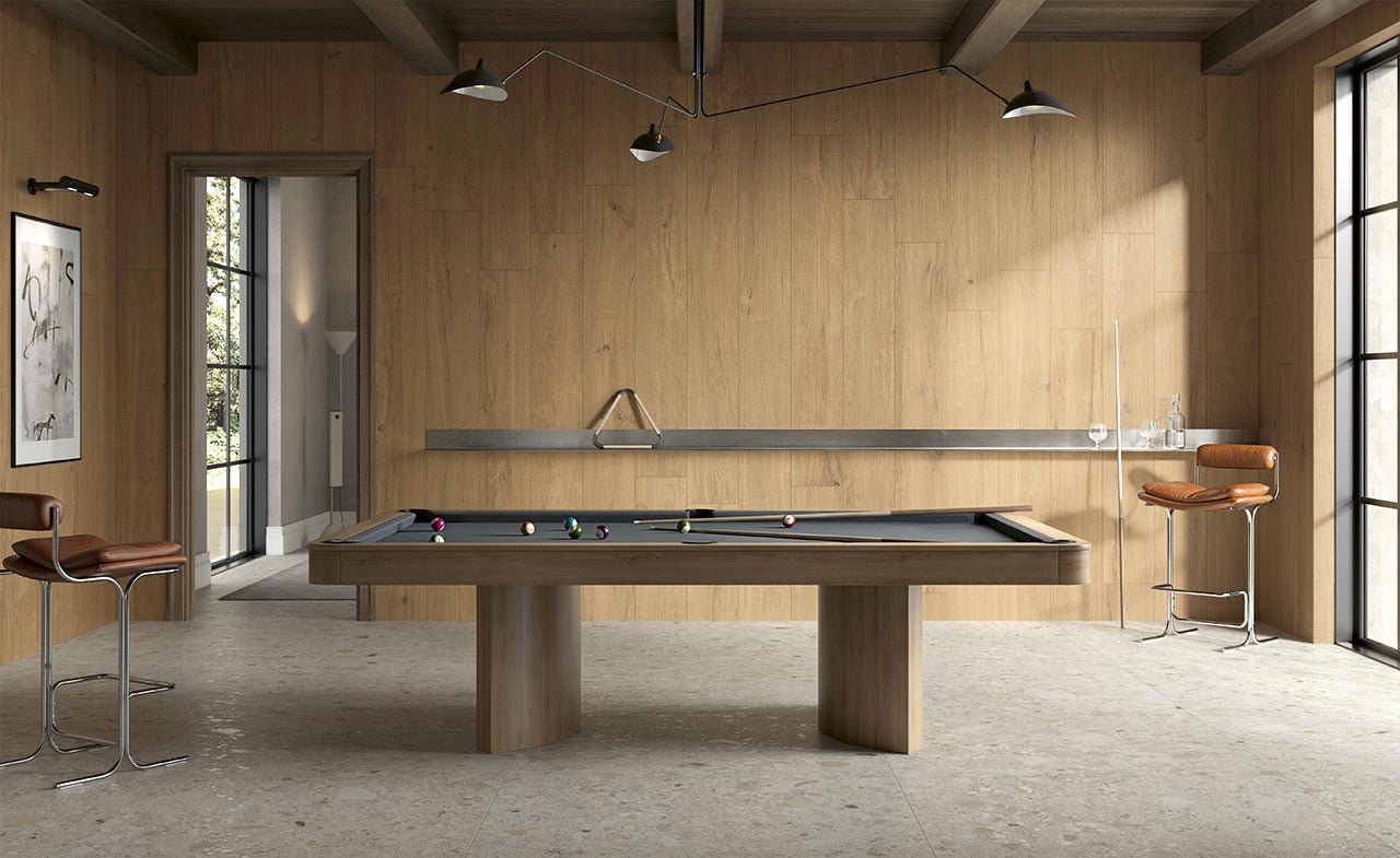 20×120 cm, 30×120 cm, un format chevron 9,6×56,6 cm et un spectaculaire format XXL 26,5×180 cm, idéal pour accentuer l’effet parquet et limiter les joints. Une mosaïque bâtons STICK 30×30 cm complète les formats.
