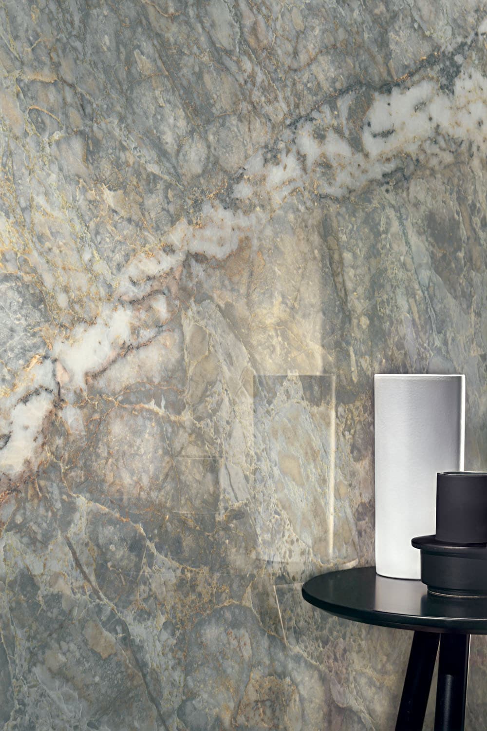 Les deux surfaces disponibles, Glossy (Brillant) et Smooth (Adouci), captent la lumière et révèlent la profondeur et l’intensité des veines naturelles, créant des reflets subtils ou un rendu plus doux et contemporain selon l’ambiance souhaitée.