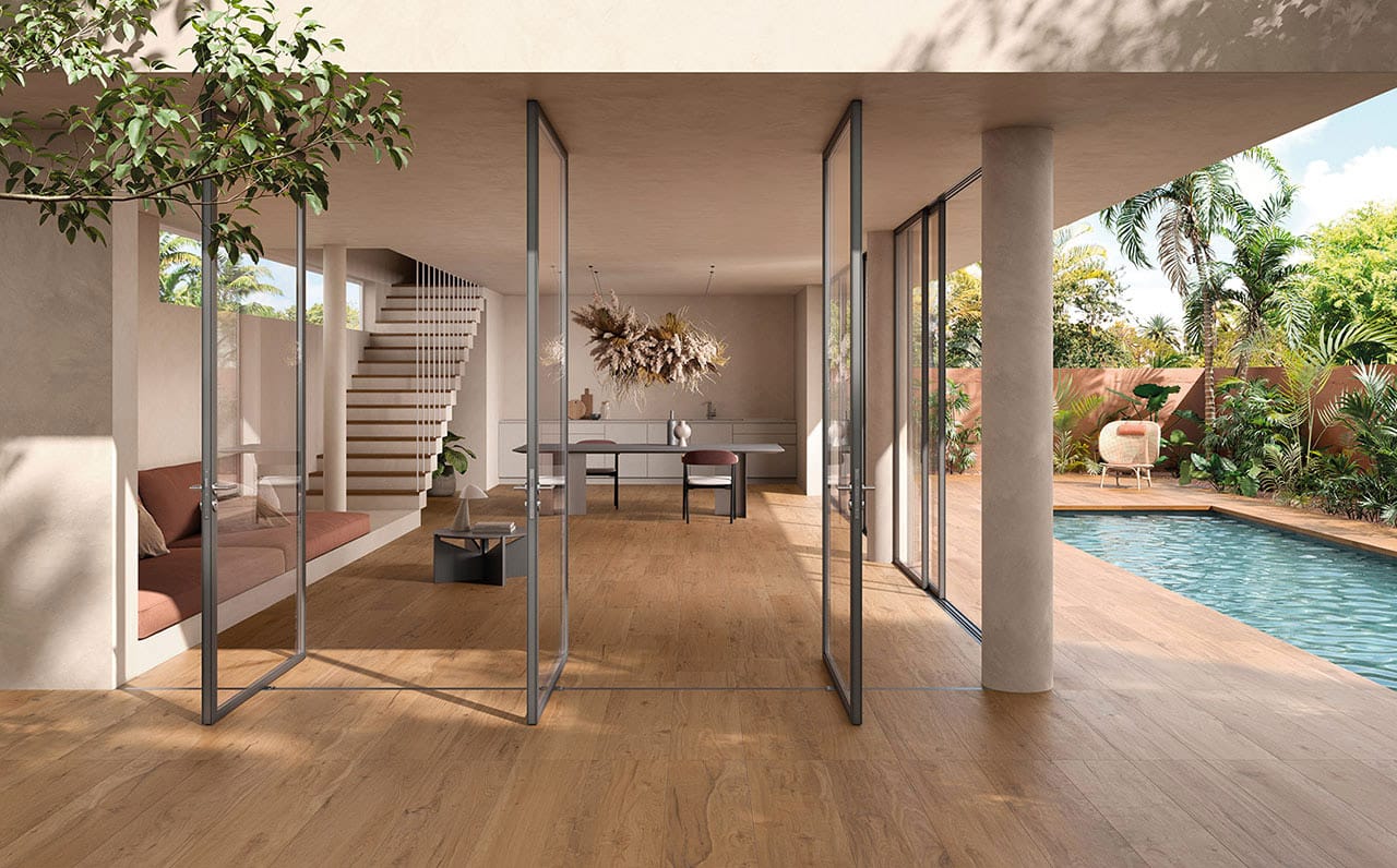 Résistant à l’humidité, facile d’entretien et durable, FOGLIAME est une alternative idéale au parquet traditionnel. Elle apporte la chaleur visuelle du bois sans ses contraintes, créant une continuité élégante entre intérieur et extérieur. Un choix sûr pour ceux qui recherchent un sol au caractère naturel, capable de traverser le temps avec style.