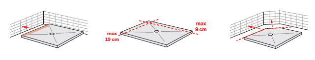 Epaisseur 3 cm – Personnalisable dans sa coupe (jusqu’à 19 cm sur le côté court et 9 cm sur le côté long). Ce receveur peut être encastré dans le sol.