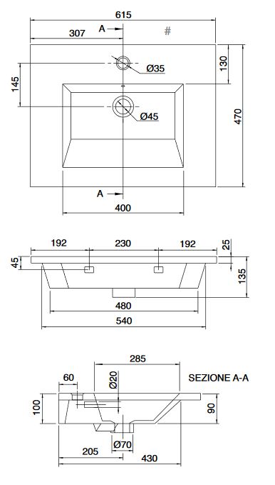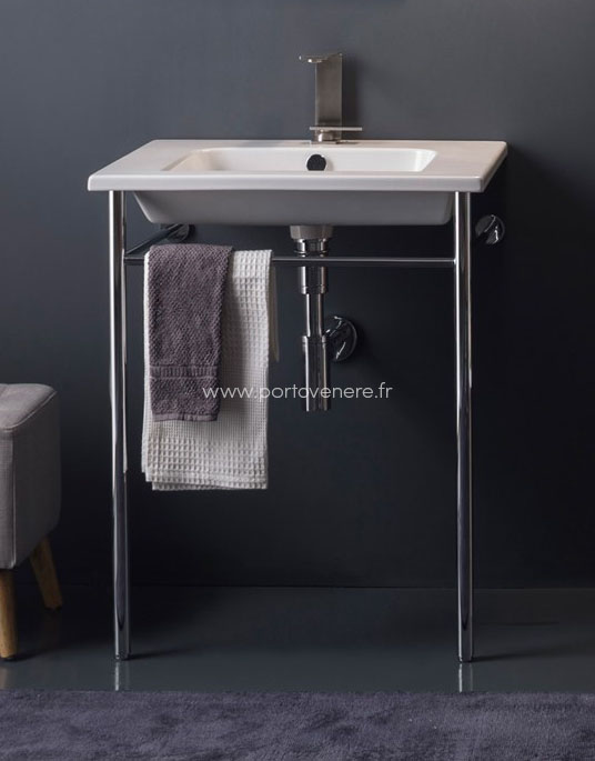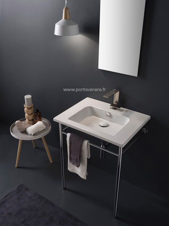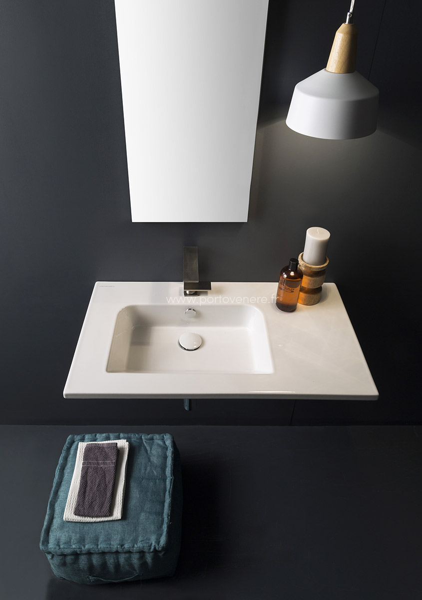 Vasque suspendue en céramique, avec perçage mitigeur, et trop-plein.
