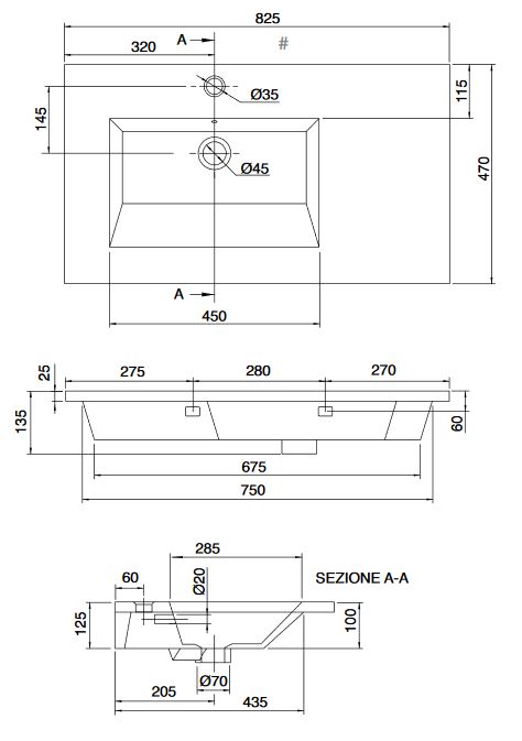Dimensions : L.82,5 x P.47 x H.13,5 cm